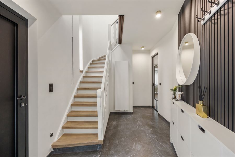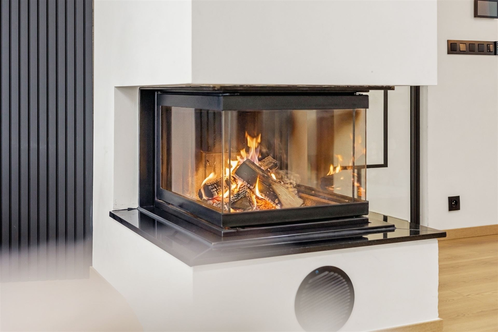 Verzorgde inkomhall met gastentoilet. Doorzonwoonkamer met gezellige haard. Open keuken voorzien van alle comfort.