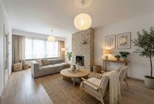 Langs een dubbele deur komen we in de woonkamer met terzijde een ingerichte keuken en een zuidgericht terrasje.