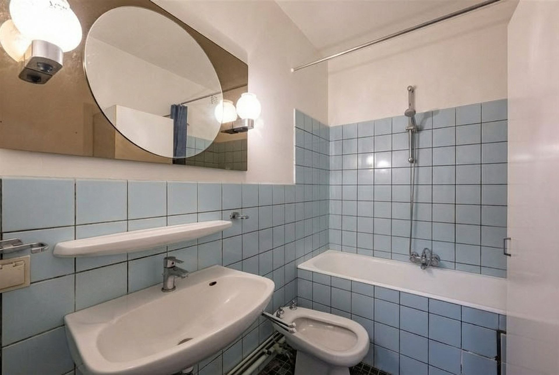 De badkamer is in oorspronkelijke staat en heeft een ligbad.