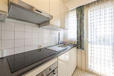 Langs een dubbele deur komen we in de woonkamer met terzijde een ingerichte keuken en een zuidgericht terrasje.